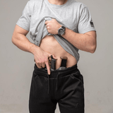 The Lifestyle Concealment Tee offers an athletic fit through the chest and shoulders which loosens at the waist to conceal your holstered handgun. Soft, premium fabric prevents printing and increases comfort with a lightweight feel.