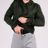 Please note: the Standoff Hoodie is not intended to support or otherwise hold a firearm. Always equip a properly-fitting IWB holster affixed to a supportive waistband when using the Standoff Hoodie. The technique of drawing through the pocket is limited by the physical size of the hand pocket openings. Oversized handguns may not permit a smooth draw, especially when outfitted with red dot sights or extended magazines. Standard sized weapon lights should not impact the draw.