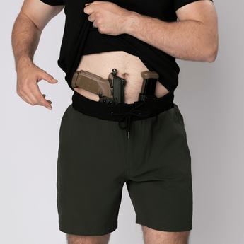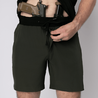 The shorts also feature an upgraded Carrier Retention Waistband with additional room for appendix carry and more comfortable holster placement options. Our patented Waistband will securely support compact to full-sized handguns in IWB holsters at any position around the waist.