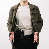 Designed for discreet, confident carry in real-world environments, the Utility Bomber Jacket features ambidextrous pass-through pockets that allow instant access to your holstered handgun without compromising comfort or mobility.